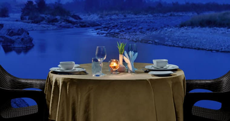 But what truly elevates your dining experience is the riverside setting. Picture yourself savoring a warm meal under the open sky, with the Kosi River flowing just a few steps away and the forest whispering softly in the background.